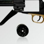 C’est le modèle de tambour qui correspond au revolver de percussion de la New Army 1858, le même type d’arme brandi par Jamie Foxx dans Django Unchained (2012).
