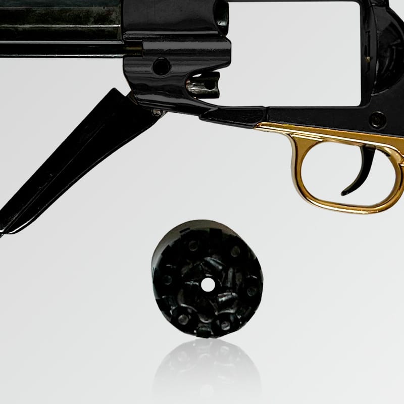 Tout d’abord, complétez votre réplique Remington 1858 avec ce Barillet à percussion de remplacement