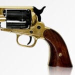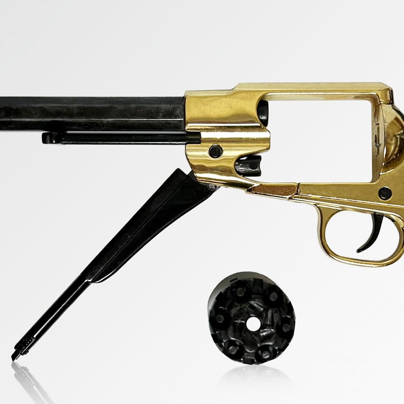 Kolser, livre ici une pièce de haute qualité alliant réalisme visuel et robustesse mécanique. Ce Remington 1858 se distingue par son poids authentique, sa poignée imitation bois parfaitement moulée. En outre, un système mécanique à inertie : le chien est mobile, le barillet tourne. Grâce au système Kolser la réplique peut être armée de pétard pour reproduire fidèlement l’action originale. Cela en fait un excellent choix pour les collectionneurs exigeants. Les amateurs de reconstitution historique, les passionnés de western, ou simplement pour enrichir une décoration inspirée du XIXe siècle. Pour conclure, chaque détail a été pensé pour restituer l’âme de l’époque avec une esthétique saisissante et un toucher convaincant. Découvrez les autres répliques Kolser comme le colt Navy 1851, ainsi que le Colt Thunderer et ses différentes crosses, il y a aussi le pistolet Derringer. Et, bien plus encore …