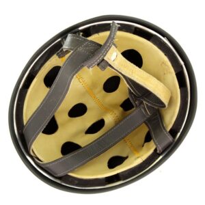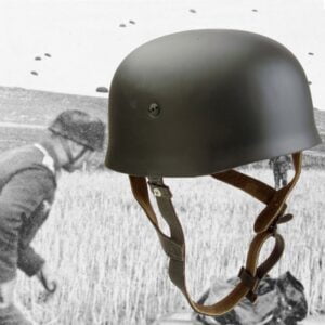 Reproduction du casque Fallschirmjäger Allemand exclusif aux parachutistes et aux forces aériennes. Coque en acier. Coiffe intérieur en cuir. Sangles partant de l’arrière qui rejoint la jugulaire se serrant avec un mécanisme autobloquant. Entièrement fonctionnel pour vos reconstitutions.