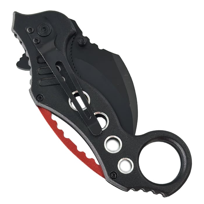 Dieses moderne, zusammenklappbare Karambit zeichnet sich durch seine geschwungene Form aus, die furchterregend effektiv ist und für ihre instinktive Handhabung bekannt ist.