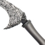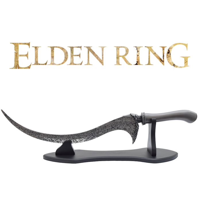 Klinge des Rufs ist eine Nachbildung, die von der legendären Waffe aus Elden Ring inspiriert ist. Ihre geschwungene Form erinnert an einen silbernen Halbmond, während die Runensteinoberfläche an himmlische Artefakte erinnert. Die detailreiche Klinge weist eine strukturierte Oberfläche auf, die einen Kontrast zum dunklen, mit gravierten Mustern verzierten Griff bildet. Dieses Stück ist für Ausstellungszwecke und Cosplay konzipiert und strahlt Eleganz und tödliche Kraft aus. Im Spiel ermöglicht dieser Dolch schnelle, heimliche und mit heiliger Energie durchdrungene Angriffe, die oft von göttlichen Agenten eingesetzt werden. Somit symbolisiert er die gesegneten Waffen, die für geheime Missionen und die Rächer der Gnade bestimmt sind.