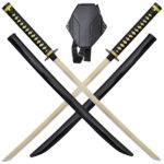 Zunächst einmal ist dieser Satz von Katana Deadpool Bea Arthur ist eine Hommage an den frechsten Söldner der Welt.’Marvel-Universum. Die beiden Stahlklingen haben gelbe Ränder, die an seinen einzigartigen Stil erinnern. Die verzierten Schutzschilde zeigen ein Design, das von Deadpools Emblem inspiriert ist. Die schwarz lackierte Holzscheide sorgt für ein elegantes Finish. Die Knäufe tragen die Aufschriften “Bea” und “Arthur”, eine Anspielung auf seinen schrägen Humor. Das Rückenholster ermöglicht eine dynamische Präsentation. Diese Repliken bieten einen perfekten Realismus für jeden Fan des Charakters. Sie verkörpern den respektlosen Geist des Helden mit den furchterregenden Waffen.