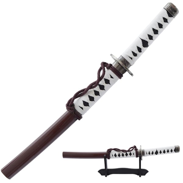 Zunächst einmal ist das Mini-Katana 45,5 cm lang und hat ein Gesamtgewicht von 230 g, das sich perfekt für die Ausstellung in einer Vitrine eignet.