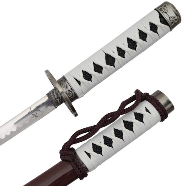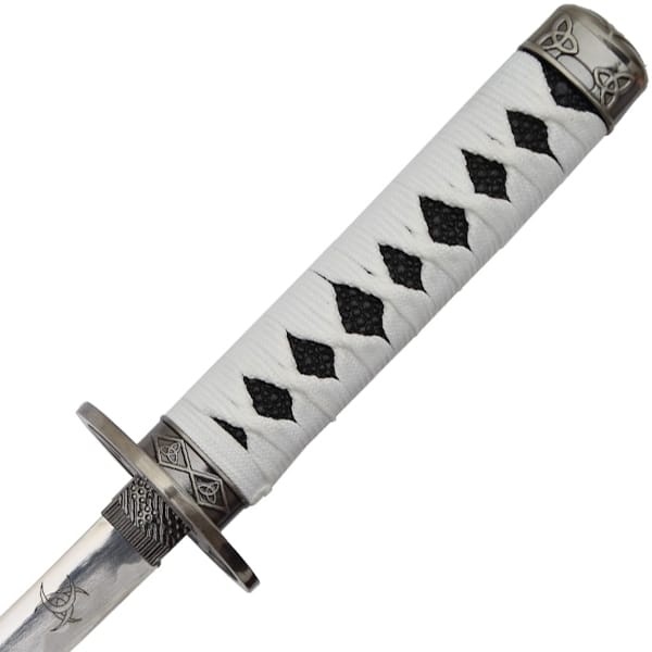Der Griff ist mit weißem Baumwollgeflecht umwickelt, getreu dem traditionellen japanischen Stil, den Michonne bei all ihren Auftritten trägt.
