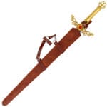 • Livré avec son fourreau en simili-cuir marron avec harnais pour le port de l’épée.