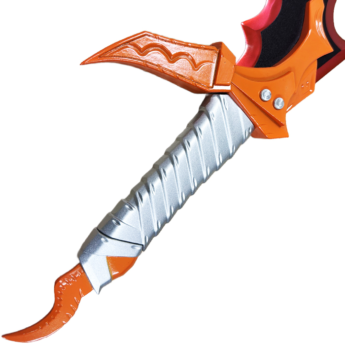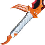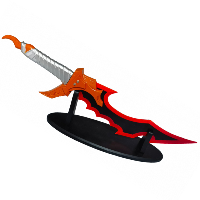 First up is the Knight Killer Dagger, one of the most iconic daggers wielded by Sung Jin-Woo in Solo Leveling. A rare, fast and terribly effective weapon. Perfectly suited to his fighting style based on speed, precision and critical attacks. In the manhwa, the Knight Killer is obtained after an arduous battle in a high-level dungeon. Specially designed to pierce heavy armor, it is the ideal weapon against knights and other armored enemies. Its serrated blade and blood-red cutting edge recall the brutality and power of its wearer. The contrast between the orange guard and the dark blade accentuates its infernal allure, an aesthetic both elegant and menacing. Inspired directly by Sung Jin-Woo's weapon, Knight Killer seduces as much by its quality as by its design.