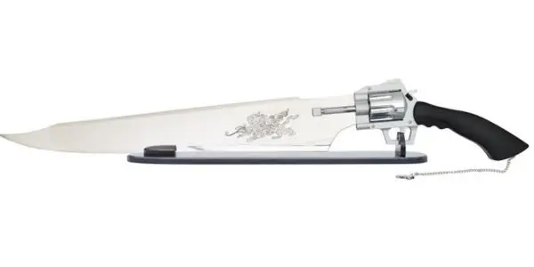 The Gunblade is a weapon with a deliberately hybrid concept: a sword blade combined with a mechanism inspired by a firearm, notably via a pistol-type handle. Visually, it's this mix that makes it so memorable.