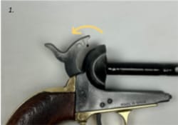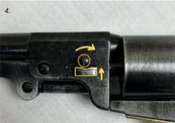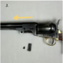 Suivez ces étapes pour séparer la réplique du Colt Navy en ses 3 parties : canon, cylindre et cadre.