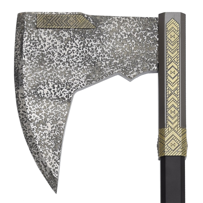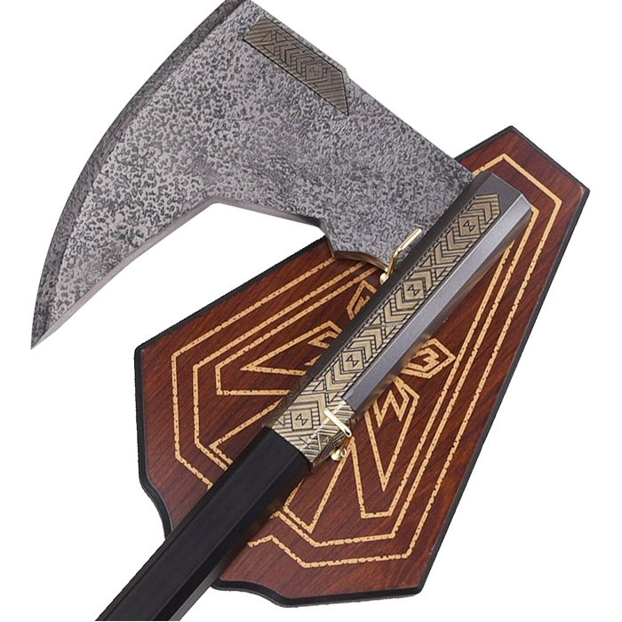 Prima di tutto, questa replica del Ascia di Gimli riproduce fedelmente il suo aspetto nella trilogia de Il Signore degli Anelli. La testa dell'ascia è interamente in metallo, con una realistica finitura damascata e una placca d'oro incisa. Il manico è in metallo rivestito in fibra nera, per una presa solida e autentica. Viene fornita con un supporto da parete per un'elegante esposizione. Nella storia, quest'ascia simboleggia la forza e il coraggio indomabili del popolo dei nani. Accompagna Gimli nella sua ricerca dell'Anello, attraversando le terre della Terra di Mezzo. Questo pezzo aggiunge un'aura eroica a qualsiasi collezione fantasy.