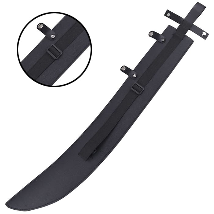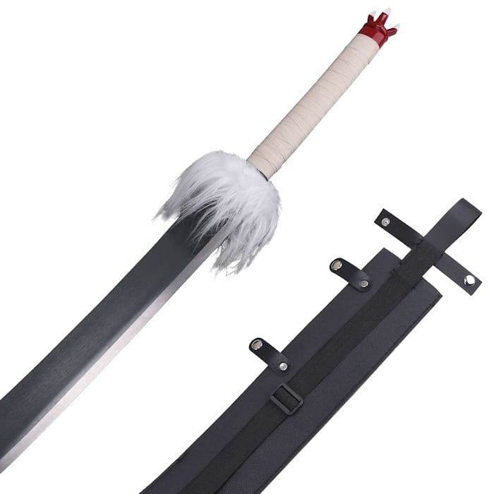 Notre réplique reproduit la courbure imposante et le large profil d’origine. De plus, la tsuba entourée de fourrure attire le regard avec autorité. Par ailleurs, la longue poignée assure une prise confortable pour cosplay et exposition. Ensuite, l’équilibre soigné rend chaque pose naturelle et chaque photo spectaculaire. Ainsi, cette lame devient le cœur battant des collections exigeantes.