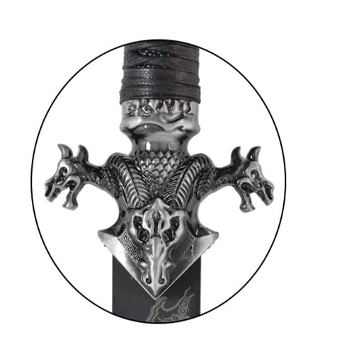 • Garde en acier plein également vieilli représentant deux têtes de dragon entrelacé.