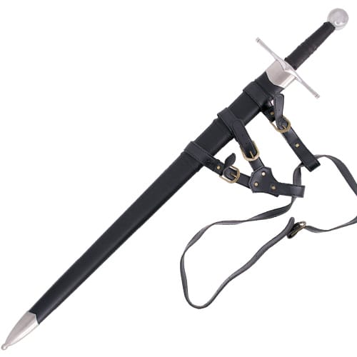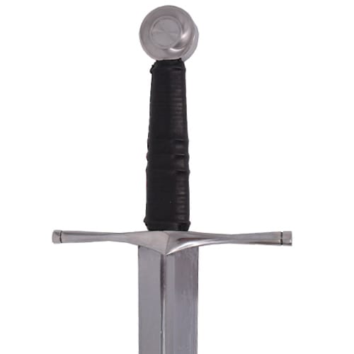 En premier lieu, cette Épée de combat Fonctionnelle, une pièce robuste conçue pour la pratique, l’entraînement ou l’exposition dans toute collection. Sa lame, en acier carbone 1065, avec gorge centrale, double biseau, et volontairement non tranchante pour la sécurité. Le pommeau circulaire en acier plein assure un parfait équilibrage et optimise la maniabilité pendant vos sessions de combat médiéval. La garde, également en acier massif, adopte une forme spécifique offrant à la fois protection et esthétique historique raffinée. La poignée est recouverte de cuir noir, garantissant une prise en main solide, confortable et adaptée aux mouvements répétés. Son fourreau en bois est recouvert de similicuir noir, muni d’une ceinture pour le transport et la présentation sur soi. Elle allie authenticité, solidité et finitions soignées pour satisfaire les passionnés de reconstitution ou d’armes médiévales anciennes.  Une épée fonctionnelle pensée pour durer, idéale pour les amateurs d’histoire vivante et de maniement traditionnel. Ajoutez dès maintenant cette pièce puissante à votre collection, elle impressionnera par sa présence et sa qualité remarquable.