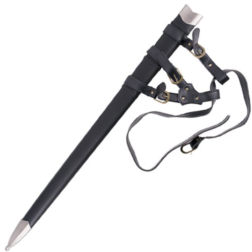 • Fourreau bois recouvert de similicuir noir avec ceinture